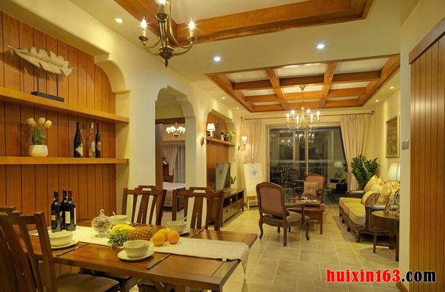 美式风格的居室装修中会比较喜欢用实木材质的家具做装饰,家具的色彩主要是以白色以及红色为主,不仅可以彰显高贵质感,更可以从造型设计中展露出一丝精美的设计感。