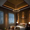 卧室吊顶使用的装修材料是石膏板,白色的石膏板增加了房间内的纯朴感觉,石膏板吊顶中间安装了一盏吸顶式的水晶灯饰,在灯光的照射下显得更加晶莹剔透,将整间卧室都映衬的非常华美,室内采用胡桃木雕花家具设计,雕花精美,做工精细,制作工艺精湛,胡桃木家具与罗汉床搭配的相得益彰,古色古香,与地砖成一个上下相互呼应之势看上去具有较好的观赏性和实用性。卧室中的装饰比较素雅,但非常的舒适,可以让人们感到放松。