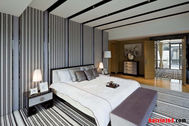 主人休息与小憩的场所,遂不适宜做太多复杂造型让休息环境更沉重。因此卧室只做以简单处理。不做传统复杂的造型,空间注重结构的合理运用。局部的细节设计是体现出主人个性、优雅的生活情趣。在合理的平面布局下着重于立面的表现。