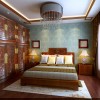 卧室吊顶使用的装修材料是石膏板,白色的石膏板增加了房间内的纯朴感觉,石膏板吊顶中间安装了一盏吸顶式的水晶灯饰,在灯光的照射下显得更加晶莹剔透,将整间卧室都映衬的非常华美,室内采用胡桃木雕花家具设计,雕花精美,做工精细,制作工艺精湛,胡桃木家具与罗汉床搭配的相得益彰,古色古香,与地砖成一个上下相互呼应之势看上去具有较好的观赏性和实用性。卧室中的装饰比较素雅,但非常的舒适,可以让人们感到放松。