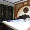 卧室吊顶使用的装修材料是石膏板,白色的石膏板增加了房间内的纯朴感觉,石膏板吊顶中间安装了一盏吸顶式的水晶灯饰,在灯光的照射下显得更加晶莹剔透,将整间卧室都映衬的非常华美,室内采用胡桃木雕花家具设计,雕花精美,做工精细,制作工艺精湛,胡桃木家具与罗汉床搭配的相得益彰,古色古香,与地砖成一个上下相互呼应之势看上去具有较好的观赏性和实用性。卧室中的装饰比较素雅,但非常的舒适,可以让人们感到放松。