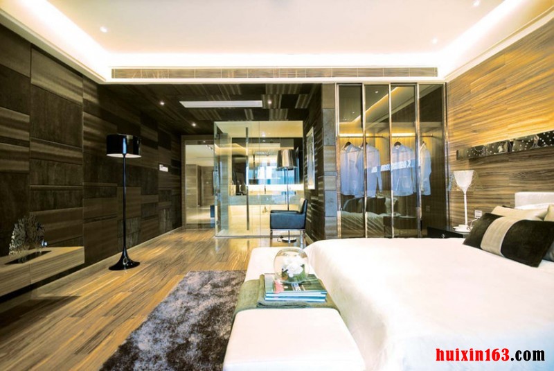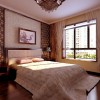 卧室不仅使人视线得到扩展,放松,更与深色的地板形成对比,相得益彰。为卧室“穿”上了一层朦胧,耐人寻味。家居饰品方面大量采用古典木质结构。地面处理采用仿木实木铺设而成,墙面采用漆面涂刷和木框镶拼制作而成,顶棚平滑亮泽,整体协调统一,古朴典雅。