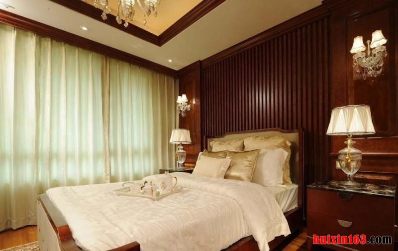 卧室吊顶的设计,是居室头顶的镜子,能够给家中衬托出一道美丽的风景。同时吊顶的照明也很有讲究,一般都会选择大型的吊灯,而且以圆形为主,取其圆满之意。从家具到柔和的感光都发挥的淋漓精致。伴随着穿越剧的流行,轻古典风格似乎也在日益崛起。
