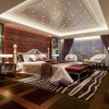 在现代风格的基础上融合了大量的古典元素,十分的大气豪华。空间撷取中国明清的历史线条融合在居家设计中,精细拿捏调和出中国风品味生活。吊顶采用石膏板进行平顶吊顶,加以水晶灯做装饰,给人一种美不胜收的感觉。