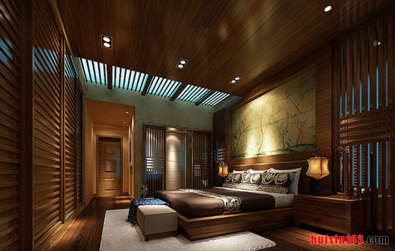 卧室采用平直流畅的几何线条吊顶造型,简明利落,卧室吊顶并未设置主灯,白天,窗外射入的光线足够照亮家居,夜晚吊顶四周的射灯搭配台灯便可点亮家居,还能营造出温馨祥和的气氛,十分舒适惬意。而实木添置的家具以及个性的雕花处理,也将空间装饰得惟妙惟肖。端庄,沉稳的电视背景完美的展现了古典的生活理念。整个空间带着东方韵味走进了现代的生活。