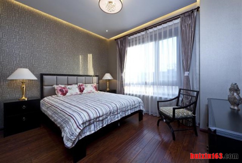 卧室端庄大气尽显其能、婉约般透露出雄厚的底气。整个空间提取了传统古典家居韵味,又融入了现代生活符号,充满中国韵味的剪纸使风格的体现的淋淋尽致。