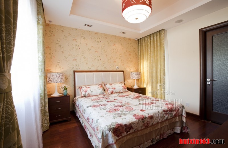 卧室端庄大气尽显其能、婉约般透露出雄厚的底气。整个空间提取了传统古典家居韵味,又融入了现代生活符号,充满中国韵味的剪纸使风格的体现的淋淋尽致。