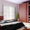 卧室采用平直流畅的几何线条吊顶造型,简明利落,卧室吊顶并未设置主灯,白天,窗外射入的光线足够照亮家居,夜晚吊顶四周的射灯搭配台灯便可点亮家居,还能营造出温馨祥和的气氛,十分舒适惬意。而实木添置的家具以及个性的雕花处理,也将空间装饰得惟妙惟肖。端庄,沉稳的电视背景完美的展现了古典的生活理念。整个空间带着东方韵味走进了现代的生活。