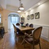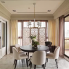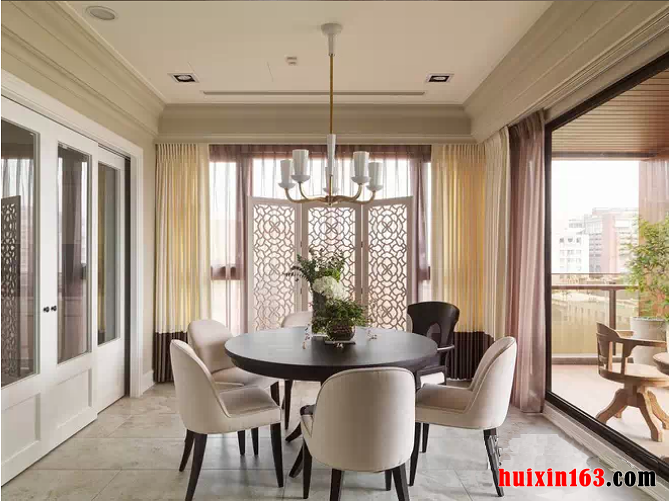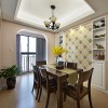 美式风格的居室装修比较注重细节处理,空间内的色彩搭配比较淡雅,偶尔的彩色饰品可以在整个空间起到点缀的作用,可以使空间的装饰气氛活跃起来,带给人们一丝新鲜感,也凸显出美式风格的装饰特点。 本套餐厅装饰中空间内的色彩搭配比较素雅,唯一可以起到点缀效果的便是餐桌上的两盆新鲜绿植,在素雅的空间内绿色会显得格外鲜艳,可以使整个空间都充满生机,也将装饰显得更加富有现代气息。 更多»推荐家装效果图