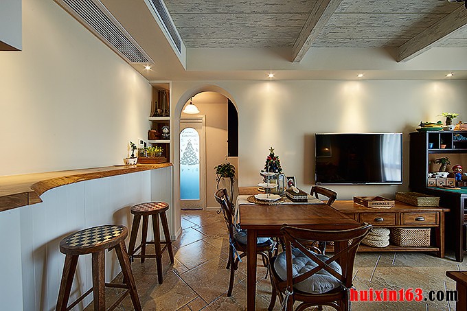 美式风格的居室装修比较注重细节处理,空间内的色彩搭配比较淡雅,偶尔的彩色饰品可以在整个空间起到点缀的作用,可以使空间的装饰气氛活跃起来,带给人们一丝新鲜感,也凸显出美式风格的装饰特点。