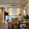 本套餐厅装饰中空间内的色彩搭配比较素雅,唯一可以起到点缀效果的便是餐桌上的两盆新鲜绿植,在素雅的空间内绿色会显得格外鲜艳,可以使整个空间都充满生机,也将装饰显得更加富有现代气息。