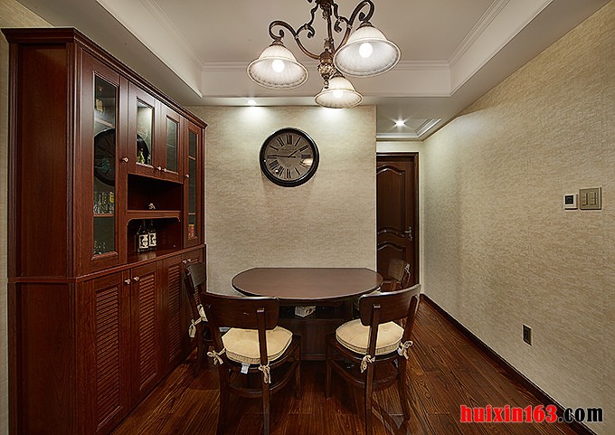 美式风格的居室装修比较注重细节处理,空间内的色彩搭配比较淡雅,偶尔的彩色饰品可以在整个空间起到点缀的作用,可以使空间的装饰气氛活跃起来,带给人们一丝新鲜感,也凸显出美式风格的装饰特点。