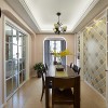本套餐厅装饰中空间内的色彩搭配比较素雅,唯一可以起到点缀效果的便是餐桌上的两盆新鲜绿植,在素雅的空间内绿色会显得格外鲜艳,可以使整个空间都充满生机,也将装饰显得更加富有现代气息。