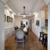 本套餐厅装饰中,空间内的石膏板吊顶设计比较简洁,四周使用了简单的线条设计勾勒出了平淡的造型,却使整个空间都显得十分大气,中间的吊灯也在石膏板的衬托下显得更加富有个性,同时也将美式风格的特点彰显了出来。