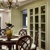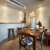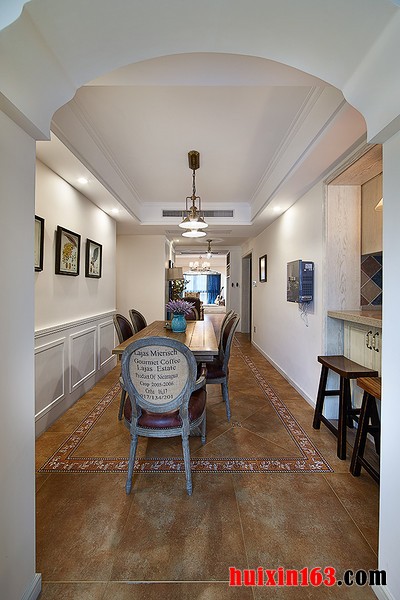 本套餐厅装饰中,空间内的石膏板吊顶设计比较简洁,四周使用了简单的线条设计勾勒出了平淡的造型,却使整个空间都显得十分大气,中间的吊灯也在石膏板的衬托下显得更加富有个性,同时也将美式风格的特点彰显了出来。