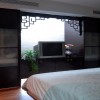 卧室整个空间看起来既有装饰感又不显得古典传统家装那样略有沉重。剽窗的使用既满足功能性又看起来大方得体,整体以浅色为主,飘窗的利用使得展示休闲及储物空间融为一体,吊顶通过实木线条的装饰,让空间色彩显得比较华丽,亮丽的地砖正好与吊顶上下相互呼应,落地窗的设计搭配上轻质的窗帘,让空间的采光强度更加的饱和。