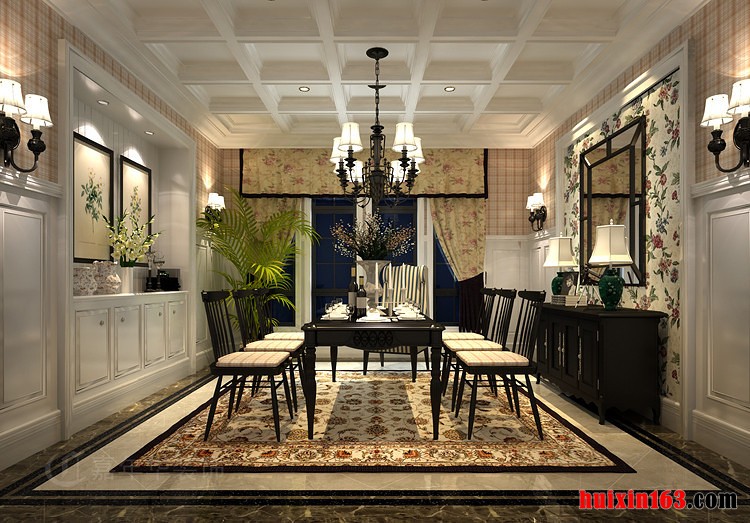 美式风格的装饰比较注重空间内的软装搭配,空间内的主色调一般都会带给人们一种温馨感,在搭配上多元材质的软装饰,更是可以颠覆传统美学的表现,在带给我们新鲜感的同时,也可以将现代装饰特点展露无遗。 本套餐厅装饰中可以透露出一丝大气的感觉,空间内的石膏板吊顶采用了简单的格子设计,但凹凸的造型设计却使整个空间都显得十分具有立体感,为装饰增添了美感,同时也凸显出了个性。 更多»推荐家装效果图