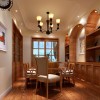 本套餐厅装饰中可以透露出一丝大气的感觉,空间内的石膏板吊顶采用了简单的格子设计,但凹凸的造型设计却使整个空间都显得十分具有立体感,为装饰增添了美感,同时也凸显出了个性。