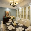 美式风格的居室装饰中不需要太过繁杂的造型设计,也不需要太多的色彩搭配,整体装饰可以带给人们一种自然气息就好,空间内的主色调一般会以温馨为主,这样可以从装饰的细节中透露出一丝亲切感。 本套餐厅装饰中空间内的色彩搭配比较淡雅,石膏板吊顶的设计也比较简洁,但正因如此,餐桌上方的吊灯才会显得更加别致,也可以将吊灯的设计感衬托出来,一款实木材质的餐桌也因此而显得更加典雅、高贵。 更多»推荐家装效果图