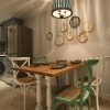 本套餐厅装饰中空间内的色彩搭配比较淡雅,石膏板吊顶的设计也比较简洁,但正因如此,餐桌上方的吊灯才会显得更加别致,也可以将吊灯的设计感衬托出来,一款实木材质的餐桌也因此而显得更加典雅、高贵。