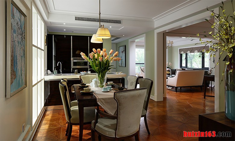 美式田园风格的装饰可以带给人们一种强烈的舒适感,同时也可以带给人们一种亲切感,空间内的装饰会比较简洁,主要是通过软装饰来彰显独特的美感,也会通过细节的处理来展现精致。