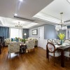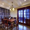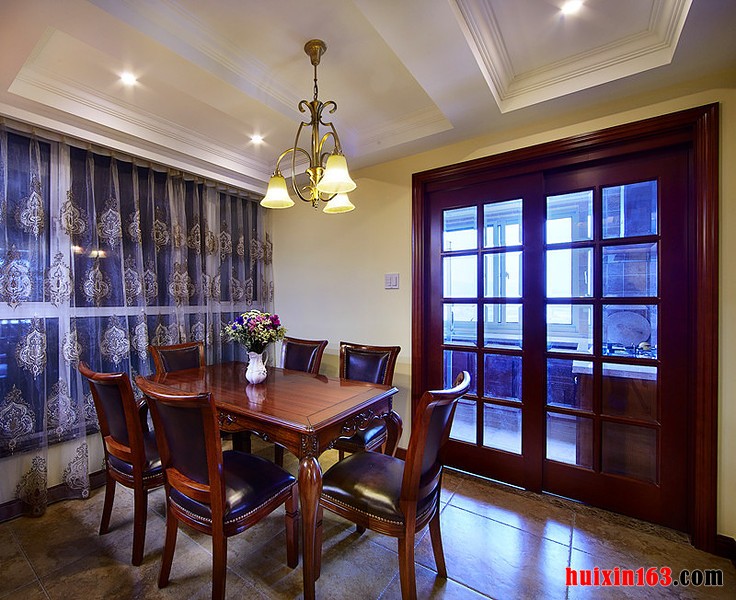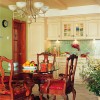 田园风格的装饰在美学上比较推崇自然,但并非是不加修饰的,在装饰的过程中也会以美式风格的装饰手法进行处理,使其装饰既具有田园风格的自然气息,又可以将美式风格的精致特点彰显出来。 本套餐厅装饰中石膏板吊顶的设计虽然简单,但设计感却十足,中间一盏独特的铁艺吊灯更是彰显了别致的设计感,下方的实木餐桌搭配上皮质的座椅更是可以将质感与高贵的设计凸现出来。 更多»推荐家装效果图