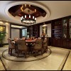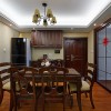 本套餐厅装饰中石膏板吊顶的设计虽然简单,但设计感却十足,中间一盏独特的铁艺吊灯更是彰显了别致的设计感,下方的实木餐桌搭配上皮质的座椅更是可以将质感与高贵的设计凸现出来。