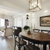 本套餐厅装饰的整体效果可以带给我们一种时尚感与奢华的气息,空间内的石膏板吊顶造型虽然简洁,但搭配上中间的吊灯后便会彰显出一丝设计感,下方的白色石材餐桌也在吊灯的照射下而显得更加高档、别致。