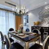 本套餐厅装饰中石膏板吊顶的饿造型设计比较简洁,四周的灯带设计也十分具有设计感,中间的吊灯虽然小巧但也充满时尚感,下方的餐桌搭配上黑白相间的皮质座椅更是可以将美式风格的设计彰显的淋漓尽致。