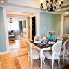 美式田园风格的装饰在选择装饰材料是会比较注重光挺、华丽的材质,在搭配上灯光的照射,可以使整个空间都显得十分唯美、精致,在餐厅空间中还会添加一些新鲜花朵或是绿植,来增添清新气息。