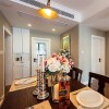 美式田园风格的装饰在选择装饰材料是会比较注重光挺、华丽的材质,在搭配上灯光的照射,可以使整个空间都显得十分唯美、精致,在餐厅空间中还会添加一些新鲜花朵或是绿植,来增添清新气息。