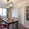 本套餐厅装饰中空间内的主色调是以白色为主,餐桌的设计比较具有个性,既像吧台又可以当做餐桌,是一款非常使用的设计,白色的石材材质搭配上瓷质餐具,更是可以将质感彰显的淋漓尽致,同时也可以展现出业主的品味。