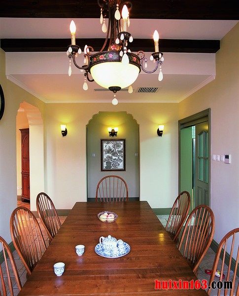 餐厅空间在我们居室装修内应该算是一大重点,在装饰的过程中既要注意安全性,同时也注意空间的装饰性,二者的完美结合才能带给人们至高享受,在美式风格的餐厅装饰中,也会融入一些民族特色的装饰,可以使整个空间都显得十分具有艺术气息。