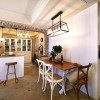 本套餐厅装饰中空间内的装饰都比较简洁,没有过于繁杂的造型设计,也没有艳丽的色彩点缀,但就是这样素雅的空间,可以将美式风格的特点彰显的更加透彻,实木餐桌上铺设了一款柔软的桌布,更是凸显了质感与设计特色。