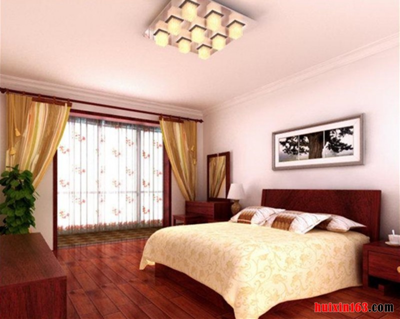 简洁大方的卧室吊顶设计,实木线装饰让吊顶显得棱角清晰,立体雅致,造型别致的铁艺吊灯搭配,为吊顶锦上添花,实木壁架及墙壁灯点缀,整体设计古雅而纯朴,体现出了古典家居风格的质朴及返璞归真的境界。简约古典风格装饰与自然佩饰的完美结合,线条与壁纸的连贯结合,解决背景墙小气使电视背景变得大气,也使整个居住空间弥漫着淡雅古典的浪漫风情。