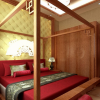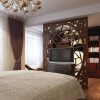 卧室吊顶可以设计黑色木结构框架,顶梁起伏造型设计,适当雕花修饰,较深的颜色,给人尊贵而古雅、深沉稳重之感。实木复合地板铺地,清晰的纹理,自然的颜色,让人感觉既浪漫又艺术。电视背景墙的设计比较简单,可以带给人们一种舒适感。