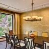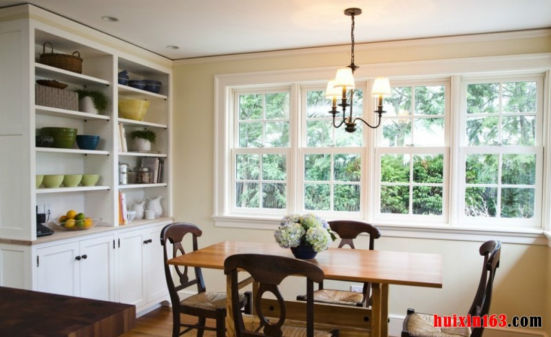 本套餐厅装饰中空间内的色彩搭配主要是以白色为主,石膏板吊顶的造型则可以带给人们一种时尚感,也将中间的黑色铁艺吊灯衬托的更加具有个性,下方的实木餐桌上搭配了一款色彩素雅的桌布,更是为空间增添了一丝温馨之意。