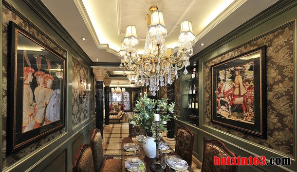 美式风格的空间内会有一丝时尚感,同时空间内也会带有一丝古典的气息,空间内也会添加一些具有民族特色以及宗教气息的装饰物品,不仅可以增添装饰美感,更可以为空间增添一丝文艺气息。 本套餐厅装饰中空间内的色彩搭配主要是以白色为主,石膏板吊顶的造型则可以带给人们一种时尚感,也将中间的黑色铁艺吊灯衬托的更加具有个性,下方的实木餐桌上搭配了一款色彩素雅的桌布,更是为空间增添了一丝温馨之意。 更多»推荐家装效果图