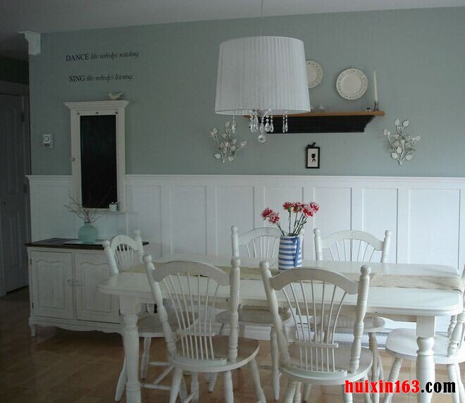 本套餐厅装饰中空间内的色彩搭配主要是以白色为主,石膏板吊顶的造型则可以带给人们一种时尚感,也将中间的黑色铁艺吊灯衬托的更加具有个性,下方的实木餐桌上搭配了一款色彩素雅的桌布,更是为空间增添了一丝温馨之意。