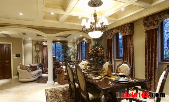 美式风格的餐厅装饰中空间内的色彩搭配往往都是比较素雅的,并不会有华丽的装饰,但整体的装饰也并不缺乏设计感,并不会带给人们枯燥的感觉,在带给人们一种新鲜感的同时,美式风格也在彰显独特的魅力。 本套餐厅装饰中石膏板吊顶的造型设计十分具有特色,一款带有棱形图案的镜面装饰镶嵌在石膏板中间,十分具有设计感,中间一盏水晶吊灯的搭配更使吊灯显得华美,搭配上下方的实木餐桌,使整个空间都充满了典雅的气息。 更多»推荐家装效果图