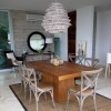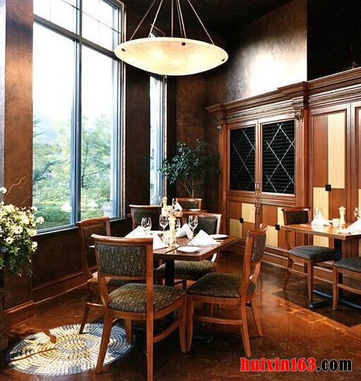 本套餐厅装饰中空间内的色彩搭配可以带给人们一种舒适感,浅色调的空间可以带给人们一种温馨感,石膏板吊顶的造型设计更是可以使整个空间都具有一定的时尚气息,餐桌上方一款黑色铁艺吊灯在浅色调的空间内显得更加时尚并具有设计感。