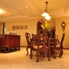 本套餐厅装饰中空间内的色彩搭配比较柔和,可以带给人们一种舒适感,石膏板吊顶的设计主要是可以将吊灯凸显出来,显得更加具有设计感,下方的实木餐桌造型比较简洁,但也并不缺乏时尚感,与空间内的整体装饰搭配在一起,反而显得十分大气。