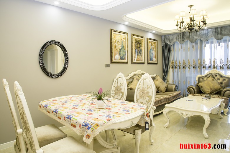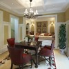 本套餐厅装饰中空间内的色彩搭配比较柔和,可以带给人们一种舒适感,石膏板吊顶的设计主要是可以将吊灯凸显出来,显得更加具有设计感,下方的实木餐桌造型比较简洁,但也并不缺乏时尚感,与空间内的整体装饰搭配在一起,反而显得十分大气。