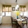 本套餐厅装饰中石膏板吊顶的设计比较简洁,圆形的圈边设计看似简单,却使整个空间都显得十分具有层次感,圆形的造型设计与下方的实木餐桌相对,更能够凸显出一种呼应的美感,圆形的设计也富有“团团圆圆”的美好寓意。