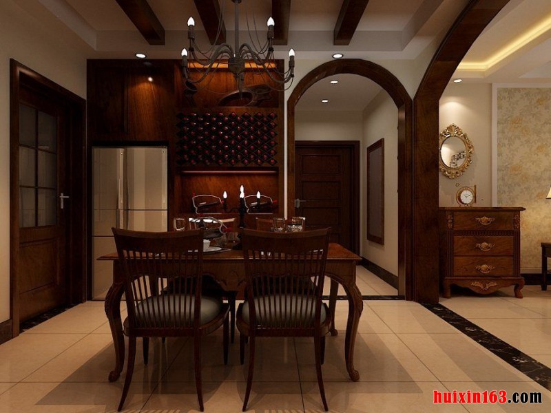 美式风格的餐厅装饰往往都会带给人们一种清新感,空间内的装饰并不会十分繁杂,只是简单的造型设计在搭配上柔和的色彩,便可以使整个空间都显得十分具有自然气息,从而带给人们一种亲切的舒适感。