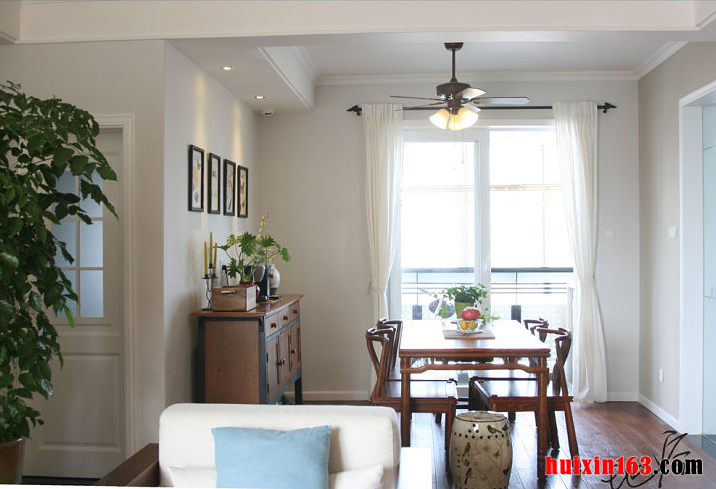 本套餐厅装饰效果带给我们的第一感觉便是自然,空间内的装饰色彩比较素雅,家具的款式也并没有过多的造型点缀,整体的装饰都以自然的姿态展现在我们面前,这样的装饰似乎更受年轻人追捧。