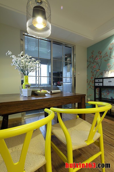 本套餐厅装饰效果带给我们的第一感觉便是自然,空间内的装饰色彩比较素雅,家具的款式也并没有过多的造型点缀,整体的装饰都以自然的姿态展现在我们面前,这样的装饰似乎更受年轻人追捧。