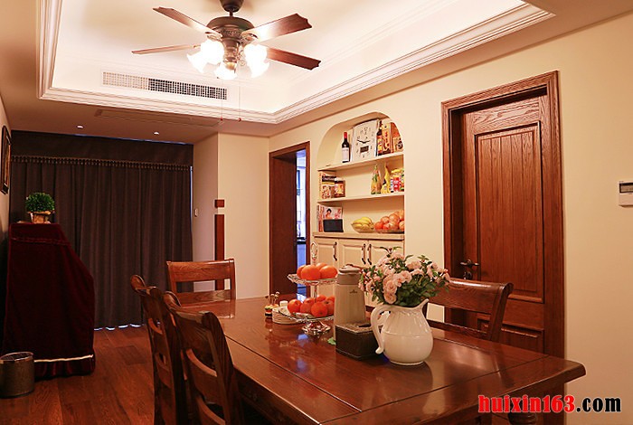 美式风格的居室装修比较讲求艺术感,空间的整体装饰效果一般可以带给人们一种大气之势,但内部的细节装饰中却可以透露出一丝时尚感,也可以通过装饰物品来展示出文化底蕴与艺术特色。 本套餐厅装饰效果带给我们的第一感觉便是自然,空间内的装饰色彩比较素雅,家具的款式也并没有过多的造型点缀,整体的装饰都以自然的姿态展现在我们面前,这样的装饰似乎更受年轻人追捧。 更多»推荐家装效果图