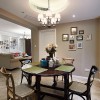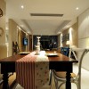 本套餐厅装饰中空间内的石膏板吊顶比较吸引人,平顶式的设计并不会显得枯燥,反而是可以将中间的黑色吊灯凸显的更加别致,黑色的框架在白色吊顶的衬托下显得更急富有设计感,同时黑白色的搭配也使空间多了一丝时尚气息。