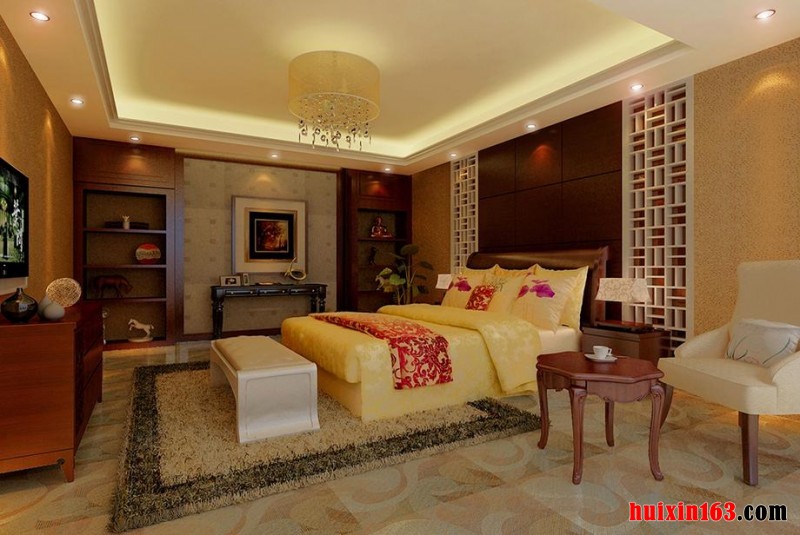 古典居家不会太过于浓厚、恰如其分的搭配,却可以完全沉浸在古典的中式风情当中,从而享受古味的美好,在卧室的设计当中,通过独具匠心的搭配,让居室环境显得比较充实而紧凑,洁白的石膏板吊顶与地砖的色彩成鲜明的反差,却又做到了相互呼应的效果,背景墙一张明清时代的壁画悬挂,让空间氛围显得更加的时尚、稳重。